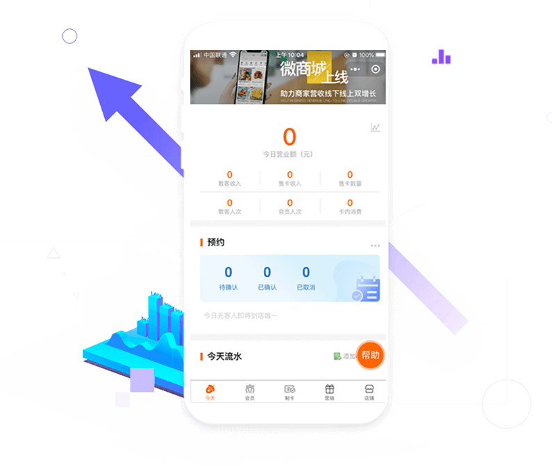 顾客未到店可预约店内服务,商家可以自由设置预约项目,并管理顾客的预约,预约后,双方都能收到预约提醒通知,已到店提醒通知。